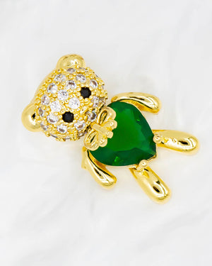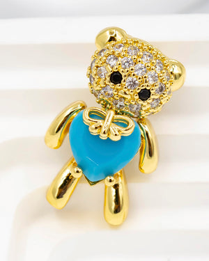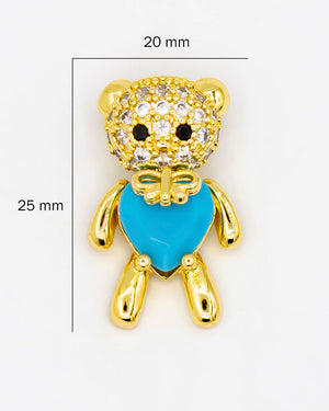 Dije de oso con corazón y circones blancos, tiene baño de rodio e incluye 1 unidad.