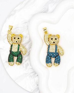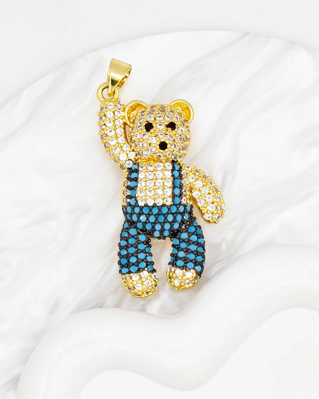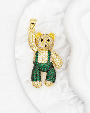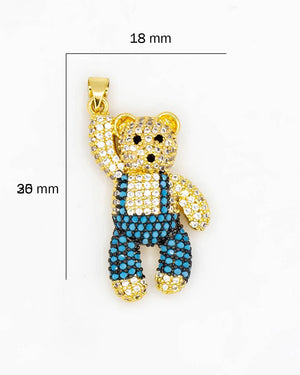 Dije oso con overol, tiene baño de rodio e incluye 1 unidad.