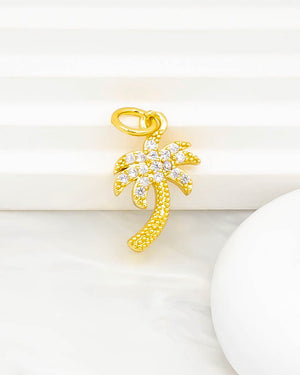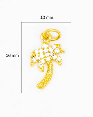 Dije palmera con circones, tiene baño de rodio e incluye 1 unidad