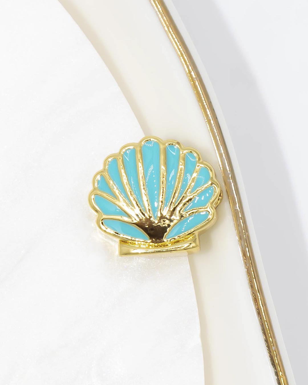 Dije pasador concha de mar azul, tiene baño de rodio, incluye 1 unidad.