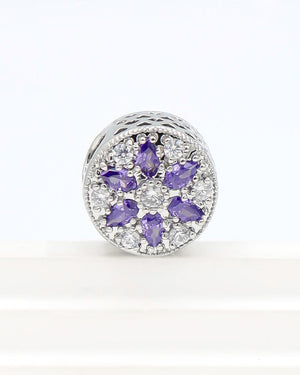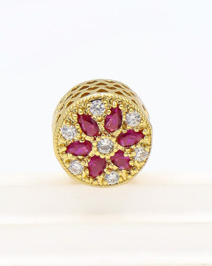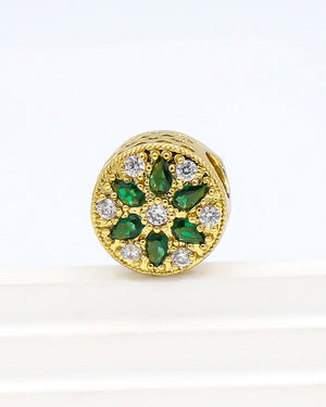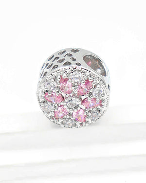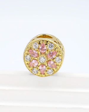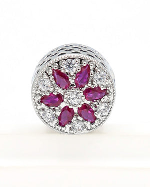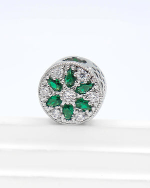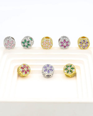 Dije pasador flor en un círculo con circones, tiene baño de rodio e incluye 1 unidad.