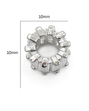 Dije pasador en forma de cilindro, tiene baño de rodio e incluye 1 unidad.