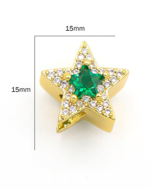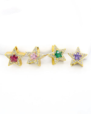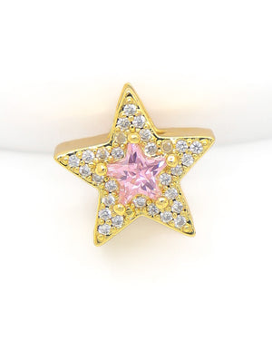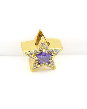 Dije pasador de estrella con circones, tiene baño de rodio e incluye 1 unidad.
