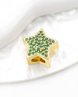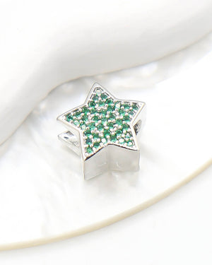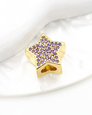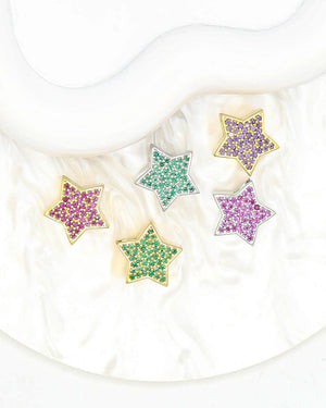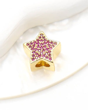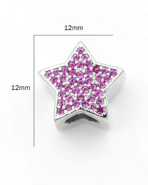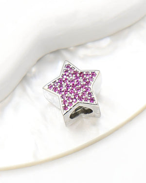 Dije pasador de estrella con circones de color, tiene baño de rodio e incluye 1 unidad.