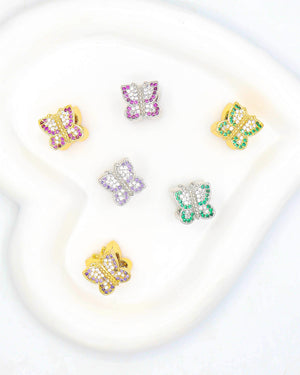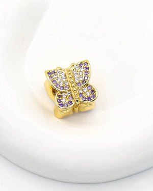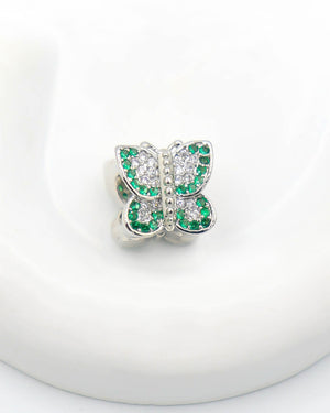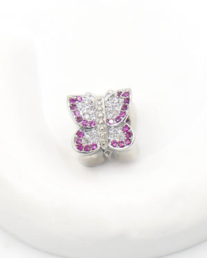 Dije pasador en forma de mariposa, tiene baño de rodio e incluye 1 unidad.