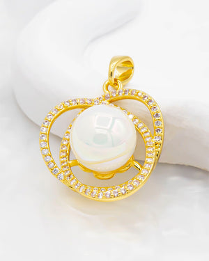 Dije de perla con circones, tiene baño de rodio e incluye 1 unidad