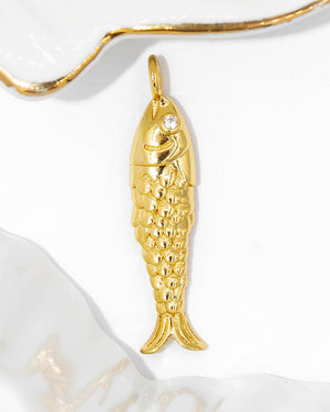 Dije pescado dorado, tiene baño de rodio, incluye 1 unidad.