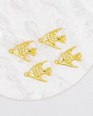 Dije de pez para pulsera con circones, tiene baño de rodio e incluye 1 unidad