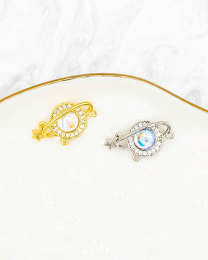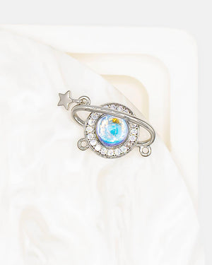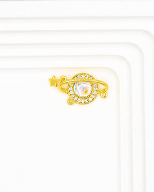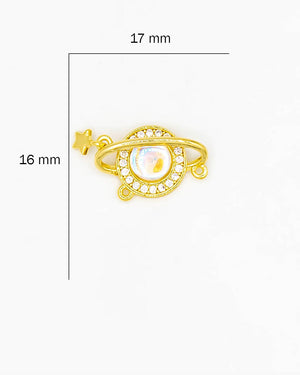 Dije doble argolla de planeta tornasol con estrella colgando, tiene baño de rodio e incluye 1 unidad