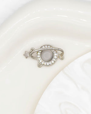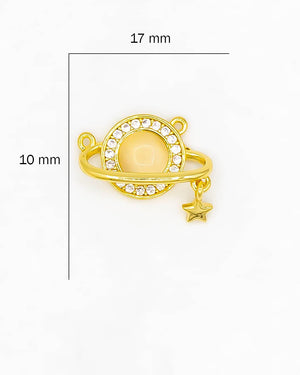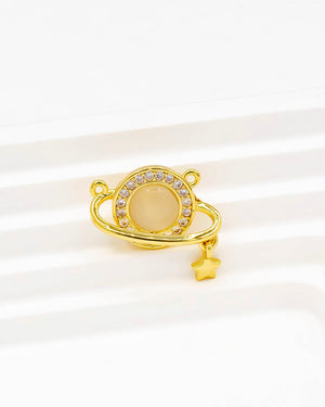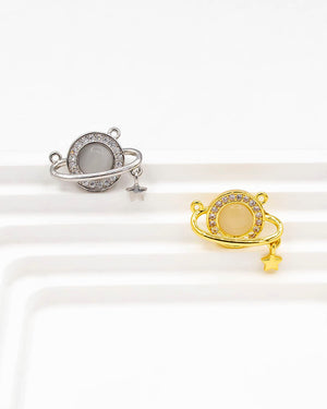 Dije de planeta con orbita, estrella y doble argolla, tiene baño de rodio e incluye 1 unidad