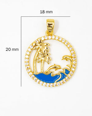 Dije playa azul, tiene baño de rodio, incluye 1 unidad.