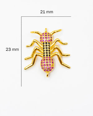 Dije de hormiga para pulsera con circones negros y fucsia, tiene baño de rodio, incluye 1 unidad.