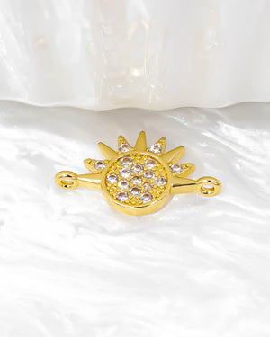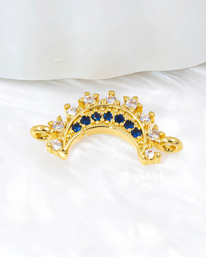 Dije sol y luna para pulsera con circones blancos y azules, tiene baño de rodio e incluye 1 unidad