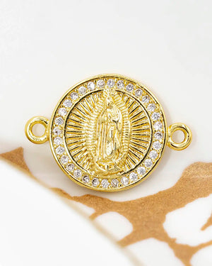 Dije para pulsera de la virgen de Guadalupe con relieve y circones, tiene baño de rodio, incluye 1 unidad.