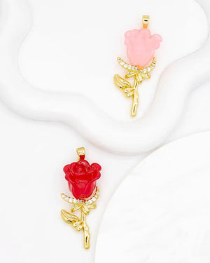 Dije rosa con circones, tiene baño de rodio, incluye 1 unidad.