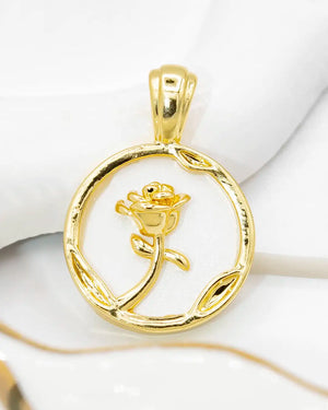 Dije rosa blanca, tiene baño de rodio, incluye 1 unidad.