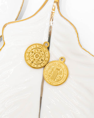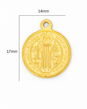 Dije San Benito de acero de 14mm, incluye 1 unidad.
