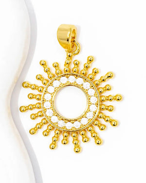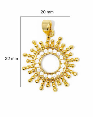 Dije sol con bolitas circones, tiene baño de rodio, incluye 1 unidad.