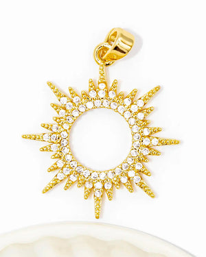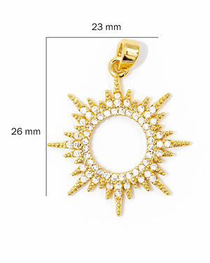 Dije sol con circones, tiene baño de rodio, incluye 1 unidad.