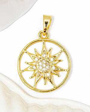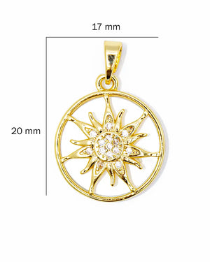 Dije sol blanco, tiene baño de rodio, incluye 1 unidad.