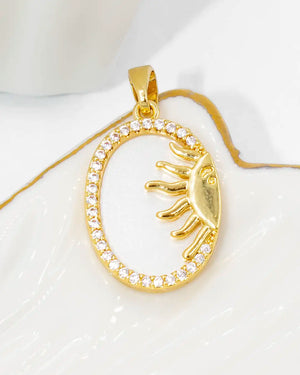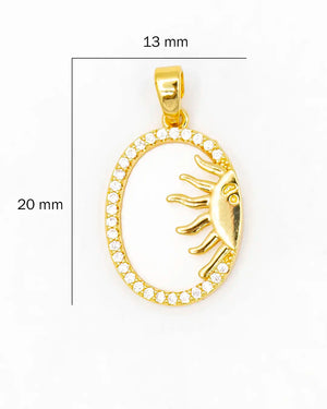 Dije sol blanco ovalado, tiene baño de rodio, incluye 1 unidad.