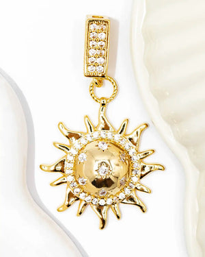 Dije sol con estrellas y circones, tiene baño de rodio, incluye 1 unidad.