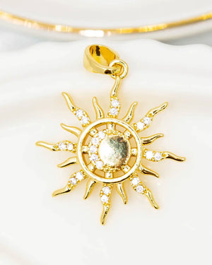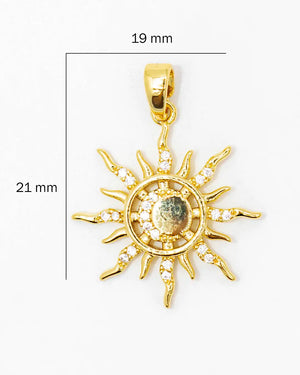Dije sol con luna y circones, tiene baño de rodio, incluye 1 unidad.