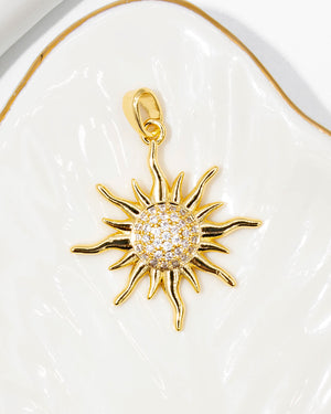 Dije de sol grande, tiene baño de rodio, incluye 1 unidad.