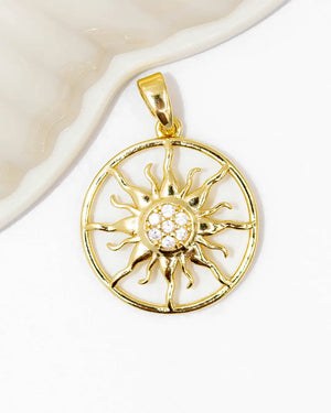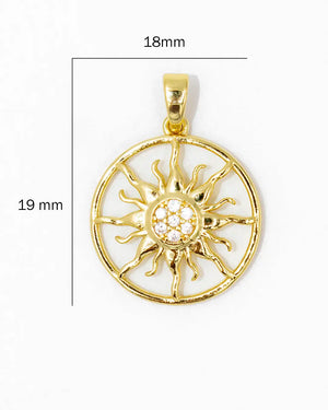 Dije sol redondo, tiene baño de rodio, incluye 1 unidad.