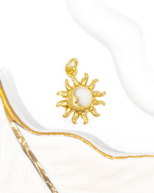 Dije de sol, tiene baño de rodio e incluye 1 unidad.