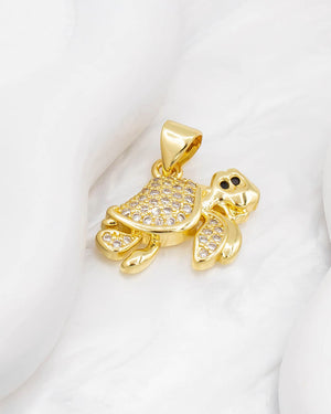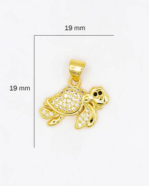 Dije de tortuga de mar con circones, tiene baño de rodio e incluye 1 unidad