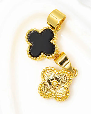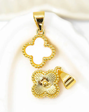 Dije trébol doble, tiene baño de rodio e incluye 1 unidad.