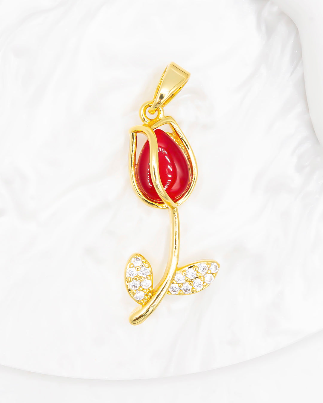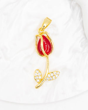 Dije tulipán con circones, tiene baño de rodio e incluye 1 unidad.