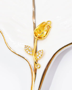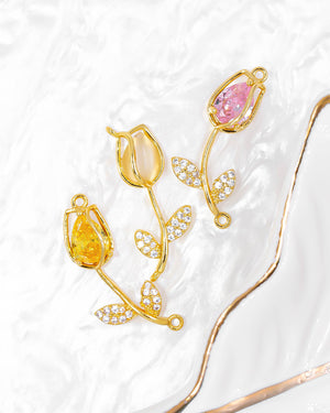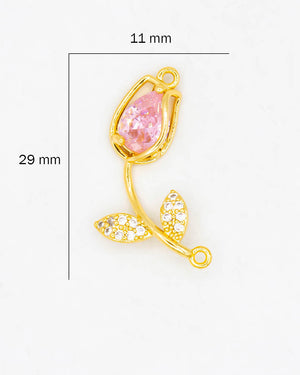 Dije tulipán rosa con circones para pulsera, tiene baño de rodio e incluye 1 unidad.
