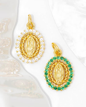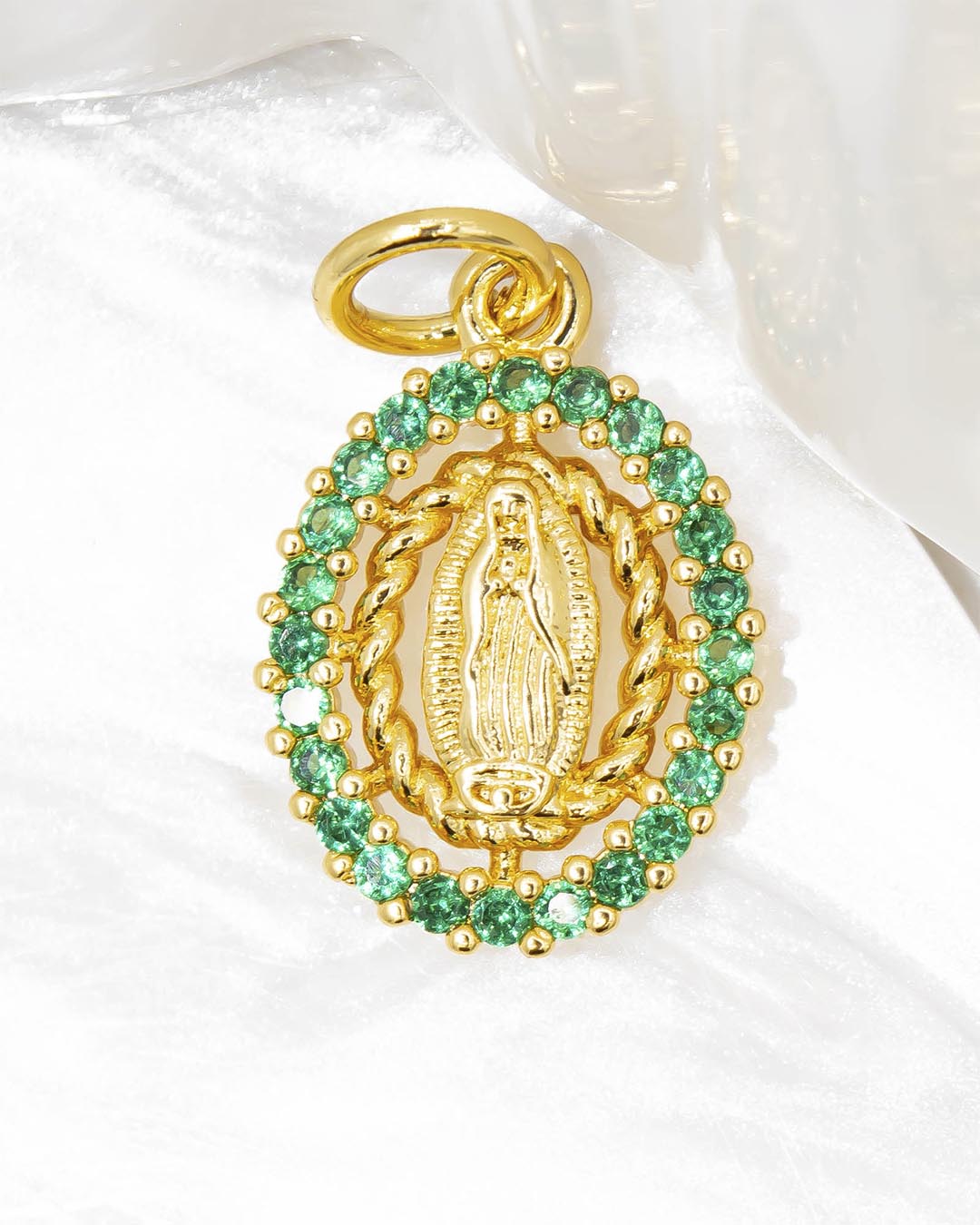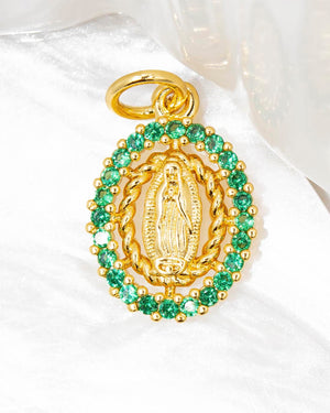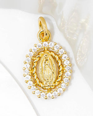 Dije Virgen con circones, tiene baño de rodio, incluye 1 unidad.