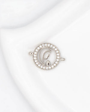 Dije de virgen para pulsera con circones blancos, tiene baño de rodio e incluye 1 unidad