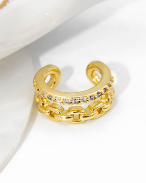 Earcuff cadena, tiene baño de rodio, incluye 1 unidad.