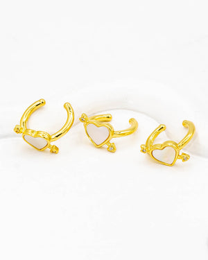Earcuff mini con corazón de nácar, tiene baño de rodio e incluye 1 unidad.