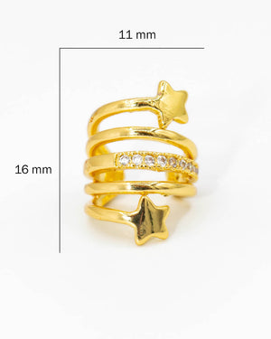 Earcuff espiral estrella, tiene baño de rodio, incluye 1 unidad.