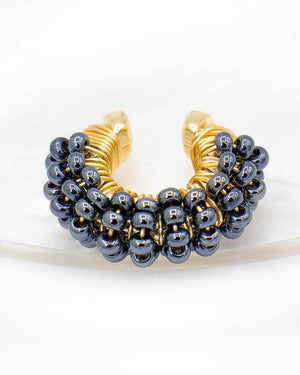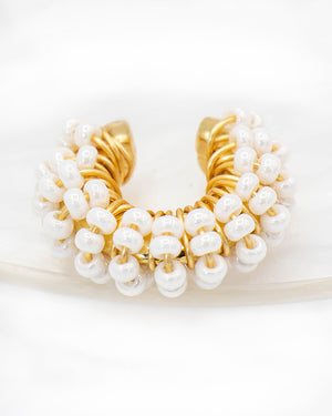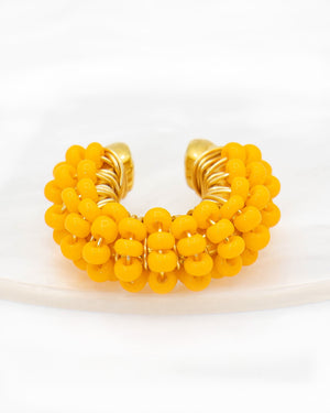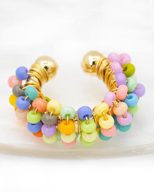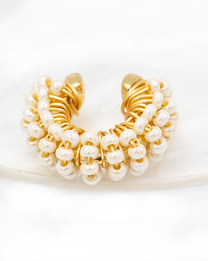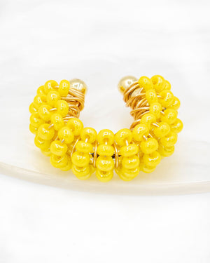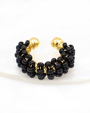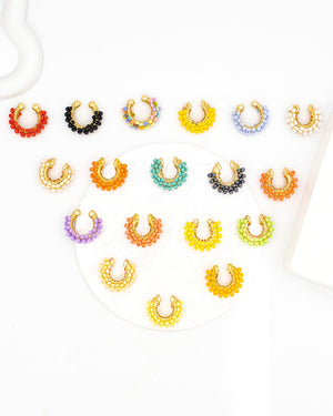Earcuff con base de golfi tejido con mostacilla, incluye 1 unidad.