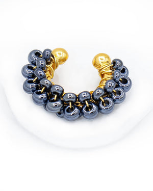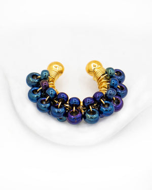 Earcuff con base de golfi tejido con mostacilla, incluye 1 unidad.