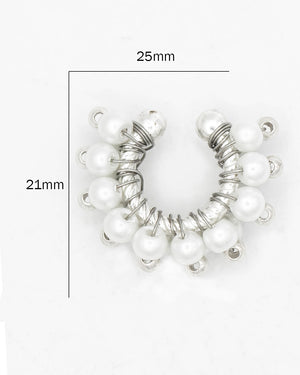 Earcuff con base de golfi tejido con perlas y balines, incluye 1 unidad.