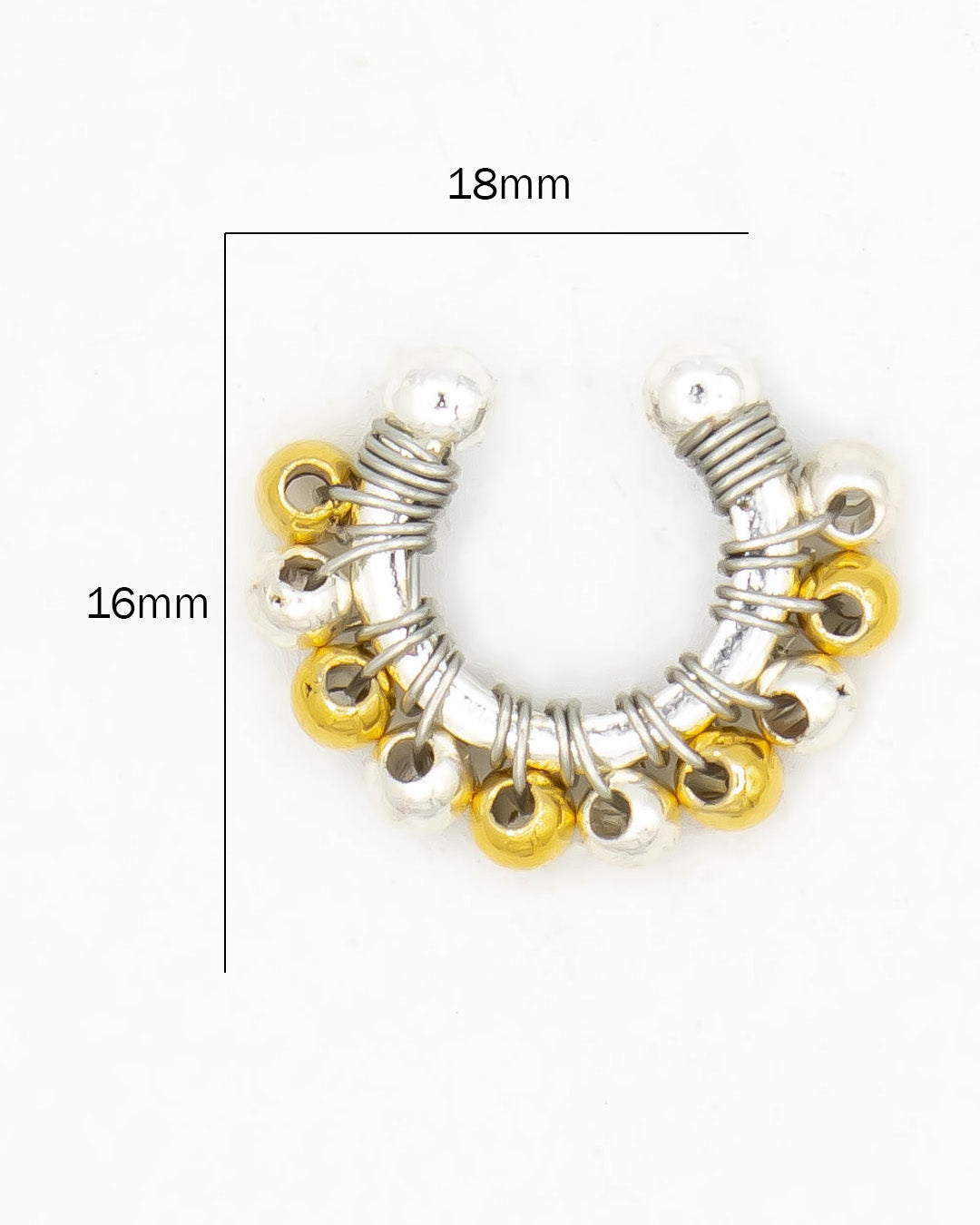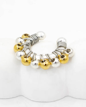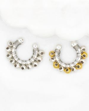 Earcuff con base de golfi tejido con balines, incluye 1 unidad.