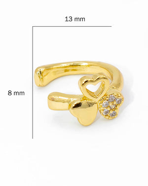 Earcuff trébol corazón, tiene baño de rodio, incluye 1 unidad.