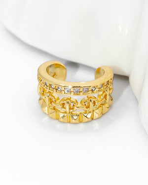 Earcuff triple cadena, tiene baño de rodio, incluye 1 unidad.