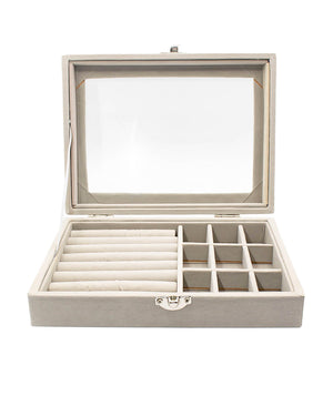 Siempre asegúrate de que el joyero esté en un lugar seco y evita que entre en contacto con líquidos. Cuando sea necesario, usa un paño suave y seco para limpiarlo. Evita el uso de productos químicos agresivos y que objetos duros o puntiagudos entren en contacto con el joyero, ya que podría rayarse. Guárdalo en un lugar seguro, alejado de la luz directa del sol y de fuentes de calor, como radiadores o estufas. Esto evitará que el material se decolore o se deforme. Además, evita sobrecargarlo para que mantenga su forma y tus accesorios siempre estén seguros.