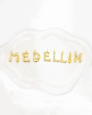 Dije de letra abstracta, tiene baño de rodio e incluye 1 unidad.