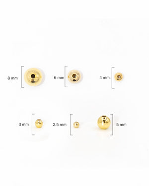 Balín liso de oro laminado, incluye 1 unidad y garantía de 5 años por cambio de color.