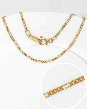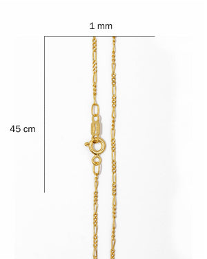 Cadena 3x1 en oro laminado, medida de 45 cm de largo y 1 mm de grosor.