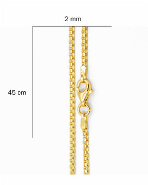 Cadena chinesca de oro laminado incluye 1 unidad y garantía de 5 años por cambio de color.